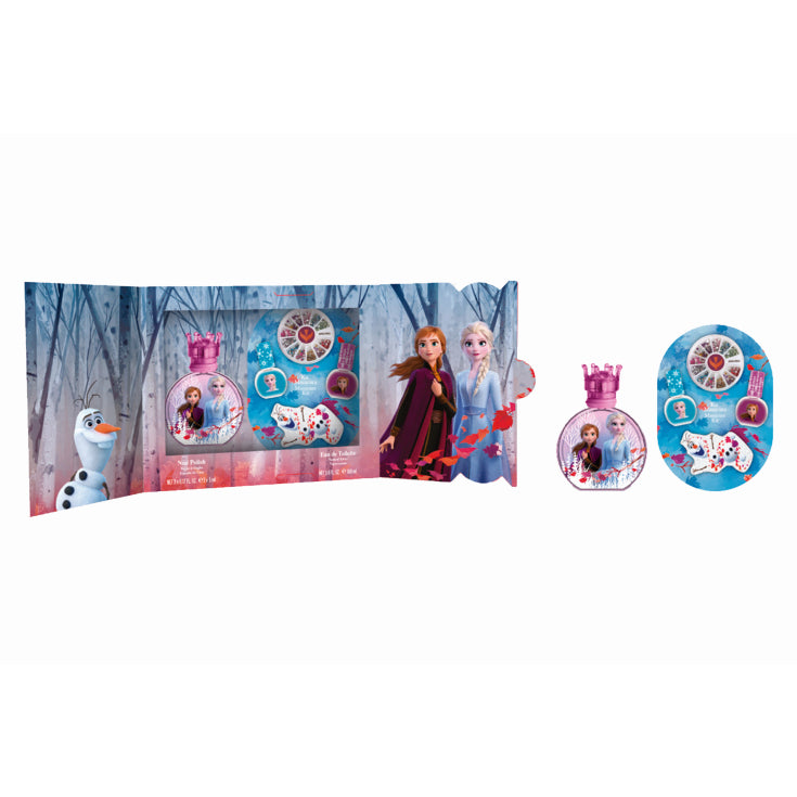 - Essences that convey freshness, strength, and personality as their characters. Set Contains: Disney Frozen II Eau de Toilette - 100ml Manicure Kit Fragrance Notes: Fruity, Floral and Musky